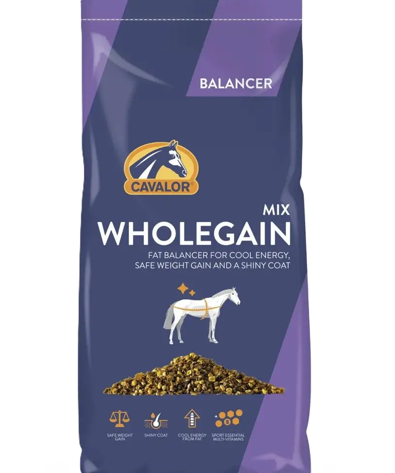 A Cavalor WholeGain a legjobb választás, ha lovadnak extra energiára, súlygyarapodásra és egészséges, fényes szőrzetre van szüksége.