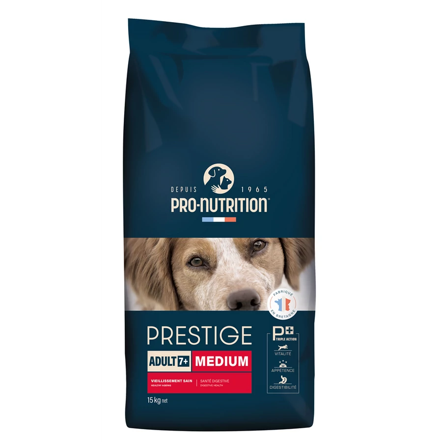 A Prestige Adult Medium 7+ egy prémium minőségű, tudományosan összeállított eledel, amely kifejezetten az idős, közepes testű kutyák táplálkozási igényeire lett szabva.