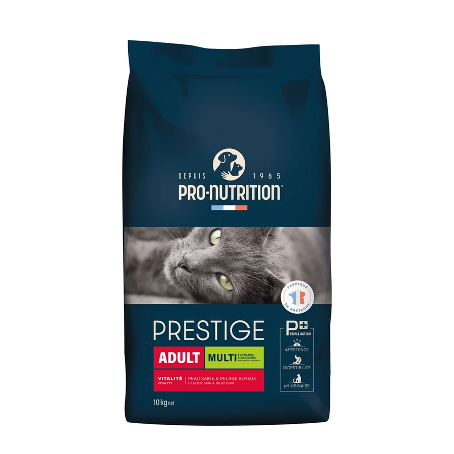 A Prestige Cat Multi egy kiegyensúlyozott, teljes értékű szárazeledel, amely kifejezetten felnőtt macskák számára készült.