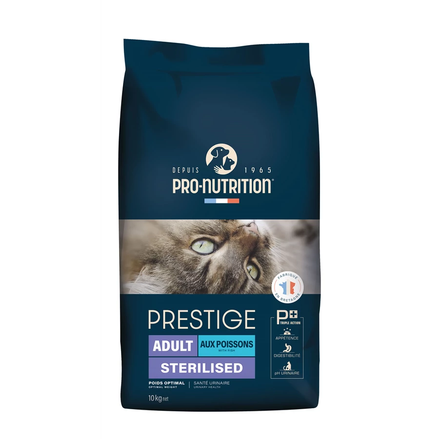 A Prestige Cat Sterilised ideális választás ivartalanított vagy kevésbé aktív macskák számára, akik számára fontos a súlykontroll, az emésztés támogatása és az immunrendszer erősítése. A halas fehérjeforrás, a probiotikumok és a természetes antioxidánsok kombinációja elősegíti az optimális testsúly, a bőr- és szőrzet egészségét, valamint a vitalitás megőrzését.Mindig biztosíts elegendő friss, tiszta ivóvizet kedvenced számára!