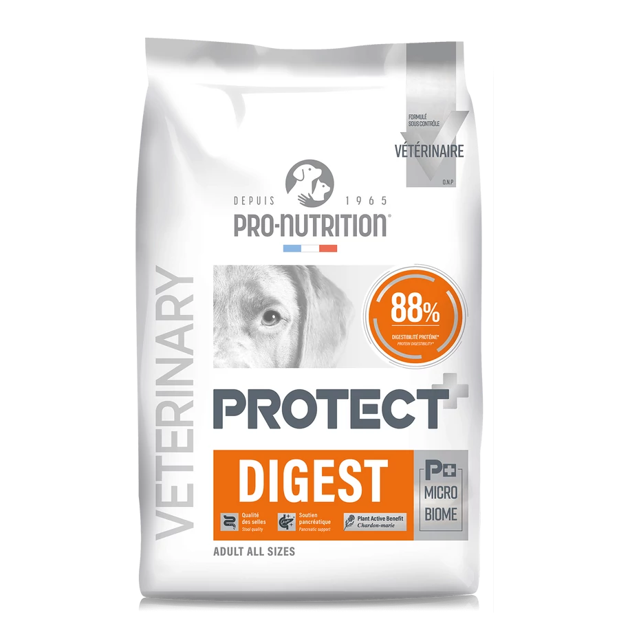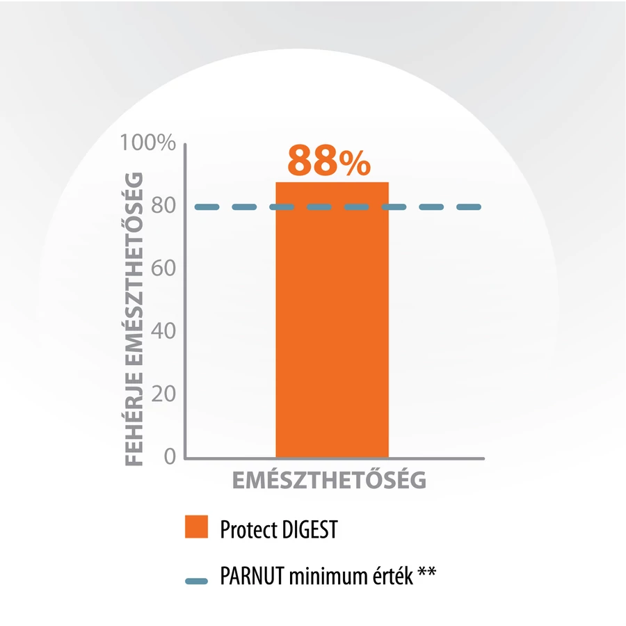A Protect Digest Dog kifejezetten az emésztési problémákkal és hasnyálmirigy-terheléssel küzdő kutyák számára készült. Alacsony zsírtartalma, kiválóan emészthető fehérjéi és gyógynövényes összetétele segíti a regenerációt, miközben támogatja az egészséges bélflórát és javítja az emésztési komfortot. Ideális választás krónikus emésztési zavarok és hiperlipidémia esetén is.Mindig biztosíts elegendő friss, tiszta ivóvizet kedvenced számára!